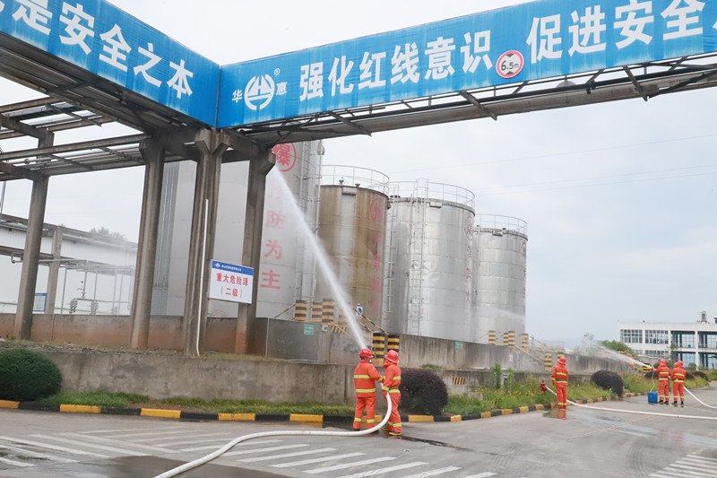 為進(jìn)一步提升重大危險(xiǎn)源安全管控水平以及公司各部門(mén)人員應(yīng)對(duì)突發(fā)事故的快速反應(yīng)、自救互救、應(yīng)急處置能力,6月25日上午9時(shí),華惠公司開(kāi)展了甲醇打料泵法蘭發(fā)生大量泄漏應(yīng)急演練。